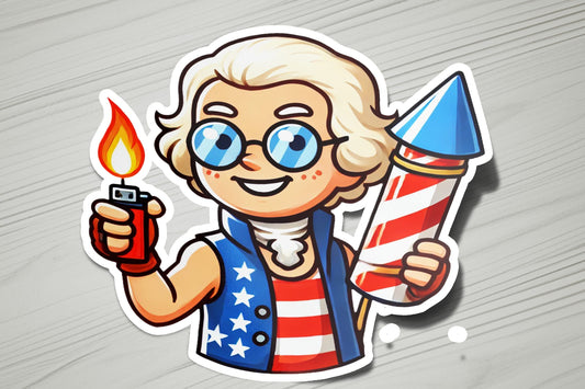 Ben Franklin Sparkler 4th of July Vinyl Sticker | Dishwasher Safe & Durable | Custom Sizes | Fast Shipping | Made in USA 1