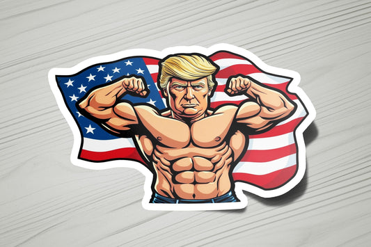 Trump Flexing Flag Vinyl Sticker | Dishwasher Safe & Durable | Custom Sizes | Fast Shipping | Made in USA 1