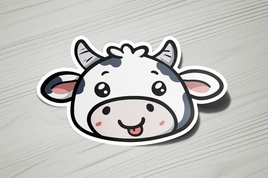 Cow Cute Head Vinyl Sticker | Dishwasher Safe & Durable | Custom Sizes | Fast Shipping | Made in USA 1