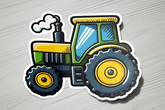 Green and Yellow Tractor Vinyl Sticker | Dishwasher Safe & Durable | Custom Sizes | Fast Shipping | Made in USA 1