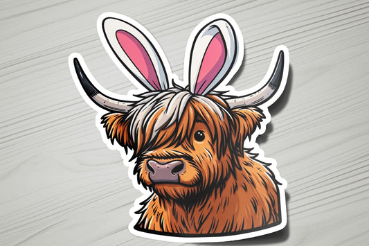 Highland Cow Bunny Ears Vinyl Sticker | Dishwasher Safe & Durable | Custom Sizes | Fast Shipping | Made in USA 1