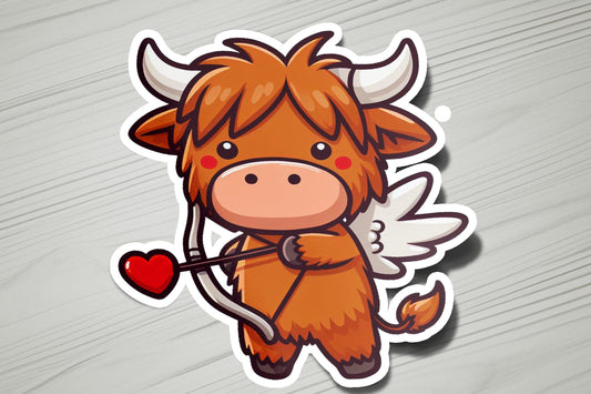 Highland Cow Cupid Vinyl Sticker | Dishwasher Safe & Durable | Custom Sizes | Fast Shipping | Made in USA 1