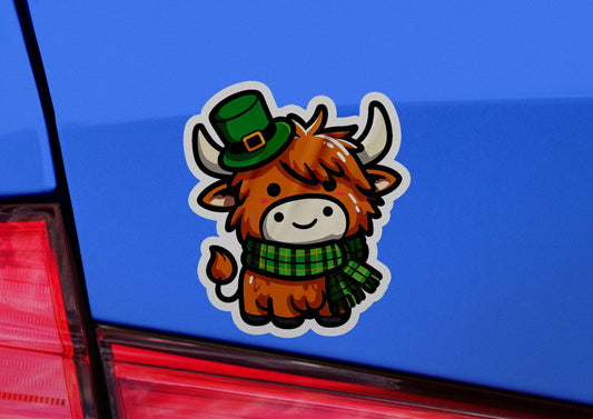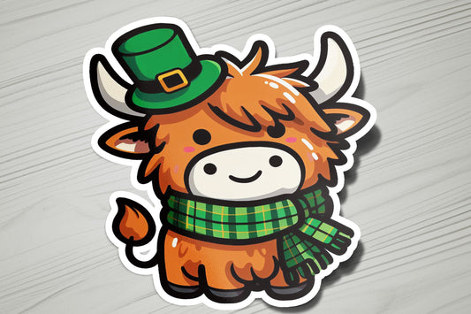 Highland Cow St Patty Vinyl Sticker | Dishwasher Safe & Durable | Custom Sizes | Fast Shipping | Made in USA