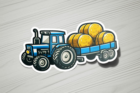 Tractor Hauling Hay Bails Vinyl Sticker | Dishwasher Safe & Durable | Custom Sizes | Fast Shipping | Made in USA 1