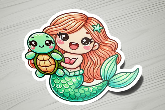 Mermaid Holding Turtle Vinyl Sticker | Dishwasher Safe & Durable | Custom Sizes | Fast Shipping | Made in USA 1