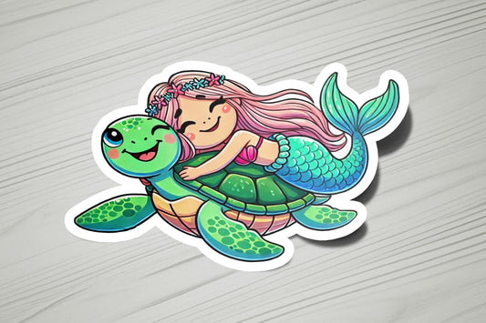 Mermaid Hugging Turtle Vinyl Sticker | Dishwasher Safe & Durable | Custom Sizes | Fast Shipping | Made in USA 1