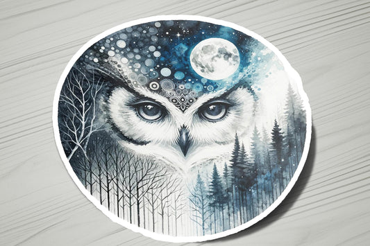 Moon Owl Winter Forest Vinyl Sticker | Dishwasher Safe & Durable | Custom Sizes | Fast Shipping | Made in USA
