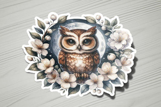 Owl with Watercolor Flower Wreath 1 Vinyl Sticker | Waterproof & Durable | Watercolor Sticker | Custom Sizes | Fast Shipping | Made in USA
