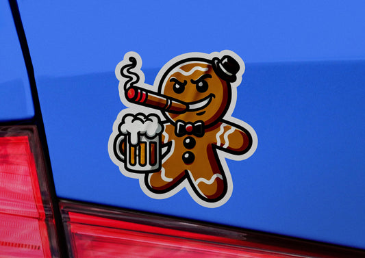 Gingerbread Man Smoking Drinking Beer Vinyl Sticker | Dishwasher Safe & Durable | Custom Sizes | Fast Shipping | Made in USA 1