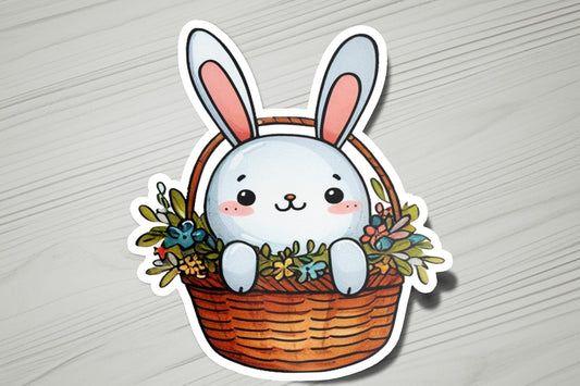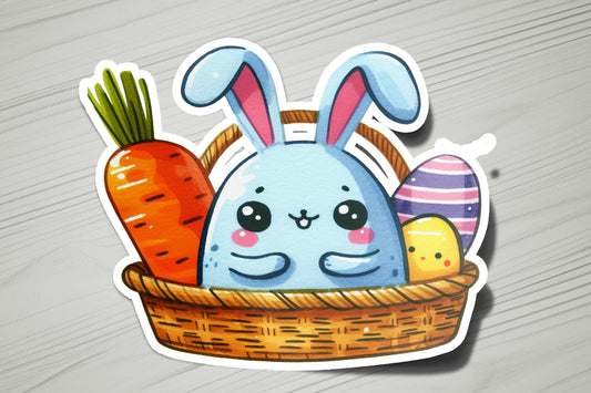Blue Bunny in Easter Basket Vinyl Sticker | Dishwasher Safe & Durable | Custom Sizes | Fast Shipping | Made in USA 1