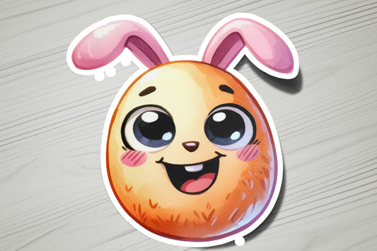 Bunny as an Egg Happy Vinyl Sticker | Dishwasher Safe & Durable | Custom Sizes | Fast Shipping | Made in USA 1