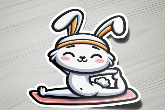 Bunny Doing Yoga Vinyl Sticker | Dishwasher Safe & Durable | Custom Sizes | Fast Shipping | Made in USA 1