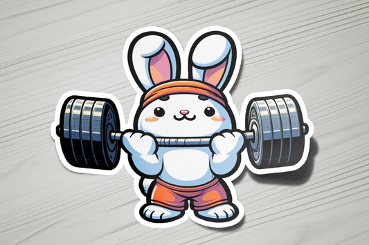 Bunny Lifting Weights Vinyl Sticker | Dishwasher Safe & Durable | Custom Sizes | Fast Shipping | Made in USA 1