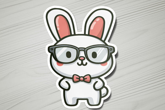 Bunny with Glasses Bowtie Vinyl Sticker | Dishwasher Safe & Durable | Custom Sizes | Fast Shipping | Made in USA 1