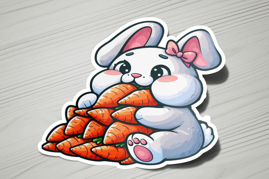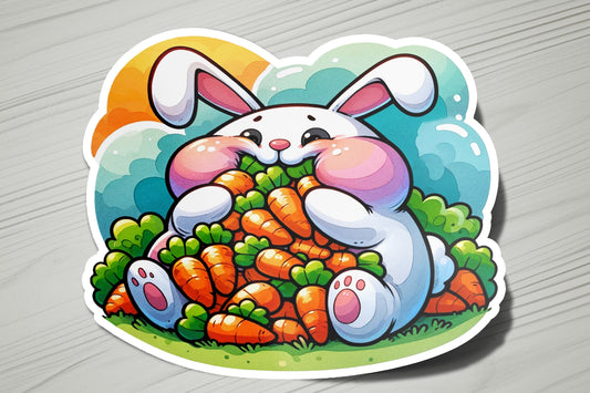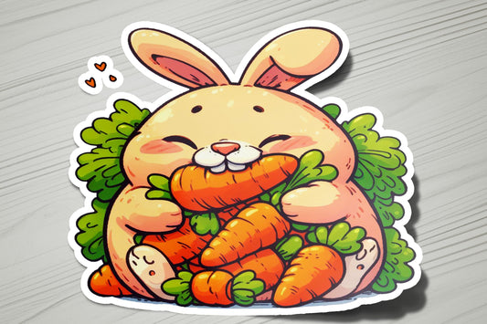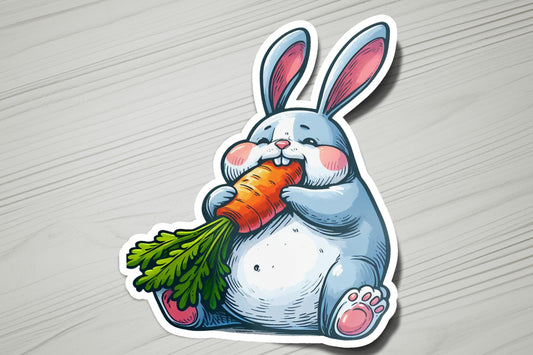 Chubby Bunny Eating Carrots Vinyl Sticker | Dishwasher Safe & Durable | Custom Sizes | Fast Shipping | Made in USA 1