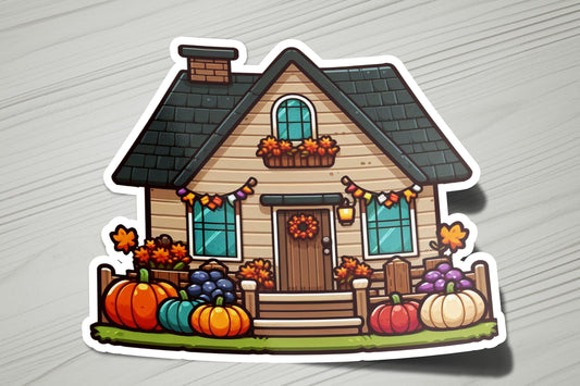 Autumn House Vinyl Sticker | Dishwasher Safe & Durable | Custom Sizes | Fast Shipping | Made in USA