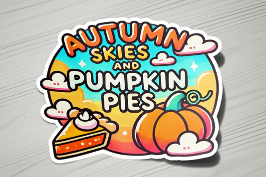 Autumn Skies and Pumpkin Pies Vinyl Sticker | Dishwasher Safe & Durable | Custom Sizes | Fast Shipping | Made in USA 1