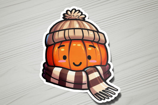 Cozy Fall Pumpkin Scarf Vinyl Sticker | Dishwasher Safe & Durable | Custom Sizes | Fast Shipping | Made in USA