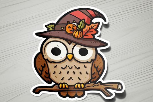Fall Owl Vinyl Sticker | Dishwasher Safe & Durable | Custom Sizes | Fast Shipping | Made in USA 1