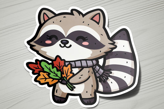 Fall Raccoon Vinyl Sticker | Dishwasher Safe & Durable | Custom Sizes | Fast Shipping | Made in USA 1