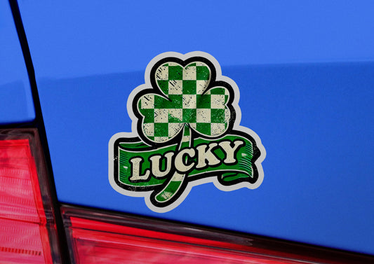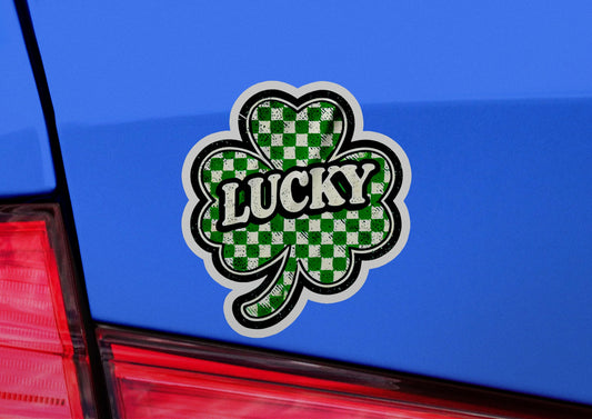 Lucky 3 Leaf Clover Checkered Vinyl Sticker | Dishwasher Safe & Durable | Custom Sizes | Fast Shipping | Made in USA 1
