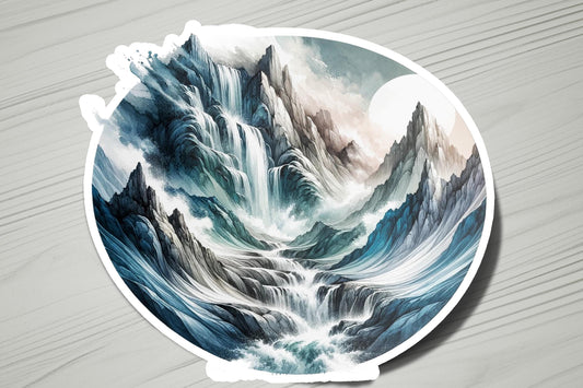 Mountain Waterfall 1 Vinyl Sticker | Dishwasher Safe & Durable | Custom Sizes | Fast Shipping | Made in USA