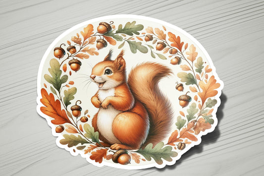 Squirrel Autumn Leaves Acorns 2 Vinyl Sticker | Waterproof & Durable | Animal Sticker | Custom Sizes | Fast Shipping | Made in USA