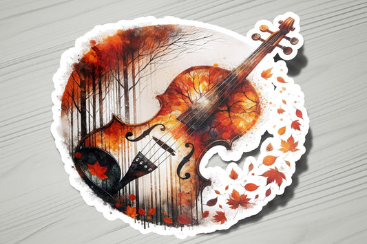 Violin Autumn Vibes Vinyl Sticker | Waterproof & Durable | Autumn Sticker | Custom Sizes | Fast Shipping | Made in USA