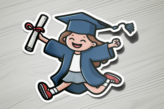 Graduation Girl Happy Vinyl Sticker | Dishwasher Safe & Durable | Custom Sizes | Fast Shipping | Made in USA 1