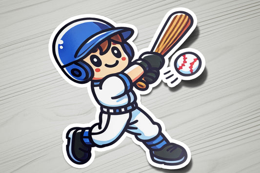 Baseball Boy Hitting Homerun Vinyl Sticker | Dishwasher Safe & Durable | Custom Sizes | Fast Shipping | Made in USA 1