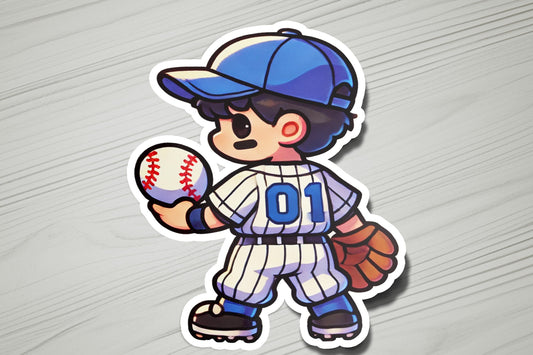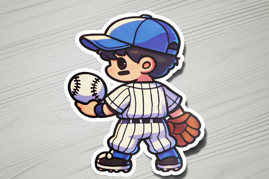 Baseball Boy Pitcher Vinyl Sticker | Dishwasher Safe & Durable | Custom Sizes | Fast Shipping | Made in USA 1