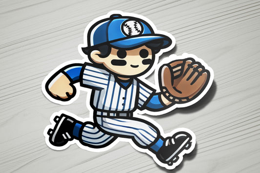 Baseball Boy Running 1Vinyl Sticker | Dishwasher Safe & Durable | Custom Sizes | Fast Shipping | Made in USA 1