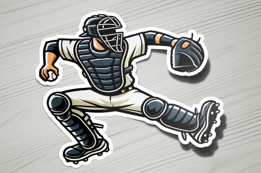 Catcher Throwing Baseball Vinyl Sticker | Dishwasher Safe & Durable | Custom Sizes | Fast Shipping | Made in USA 1